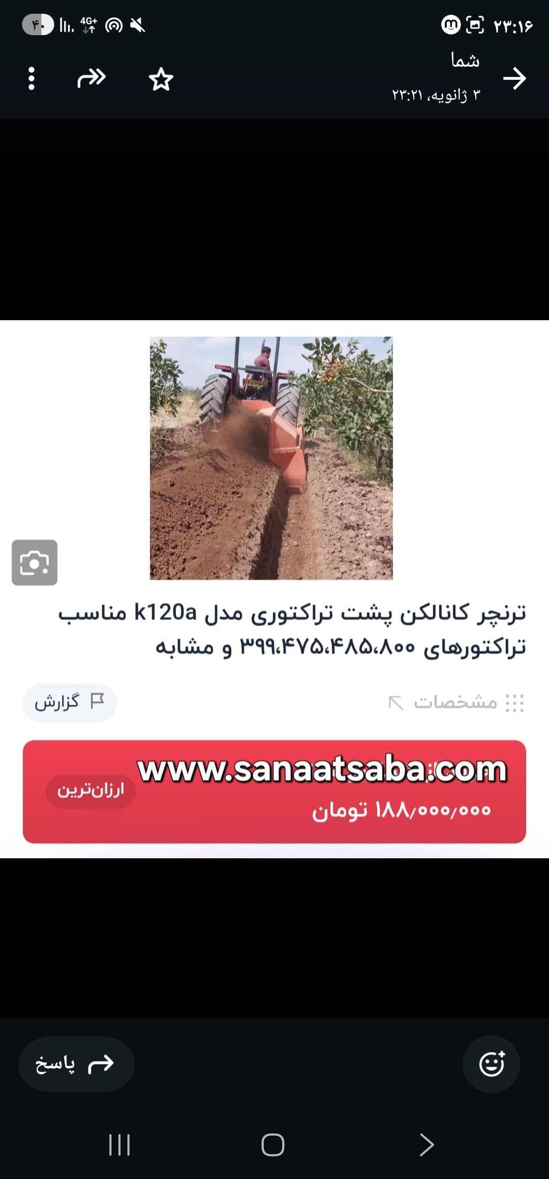 نهر کن پشت تراکتوری ترنچر k120a مناسب تمام تراکتور ها