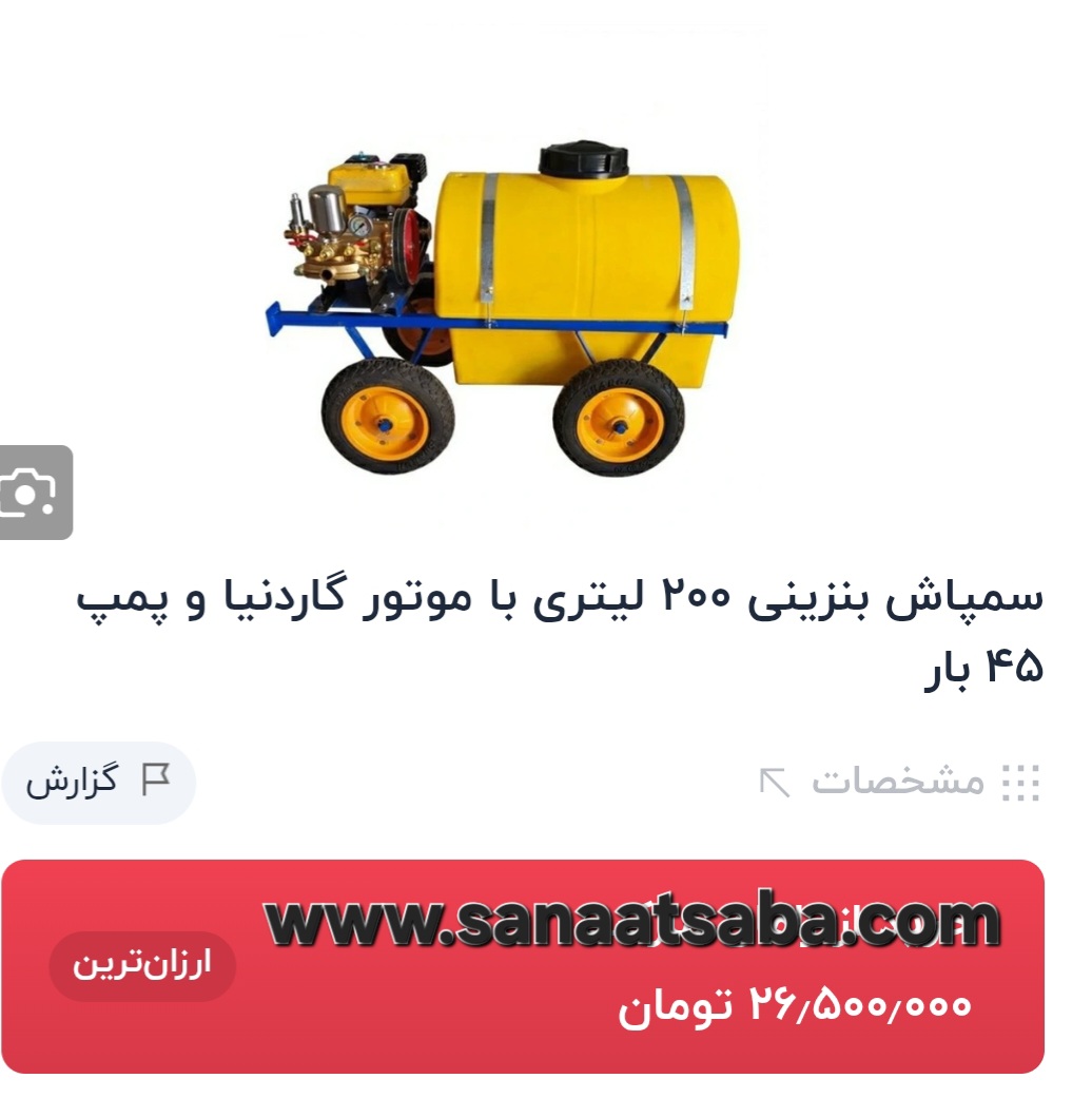 سم پاش فرعونی مخزن 200 لیتری موتور S K.A و گاردینا فشار 50 بار 6 ماه گارانتی فروش نقد و اقساط
