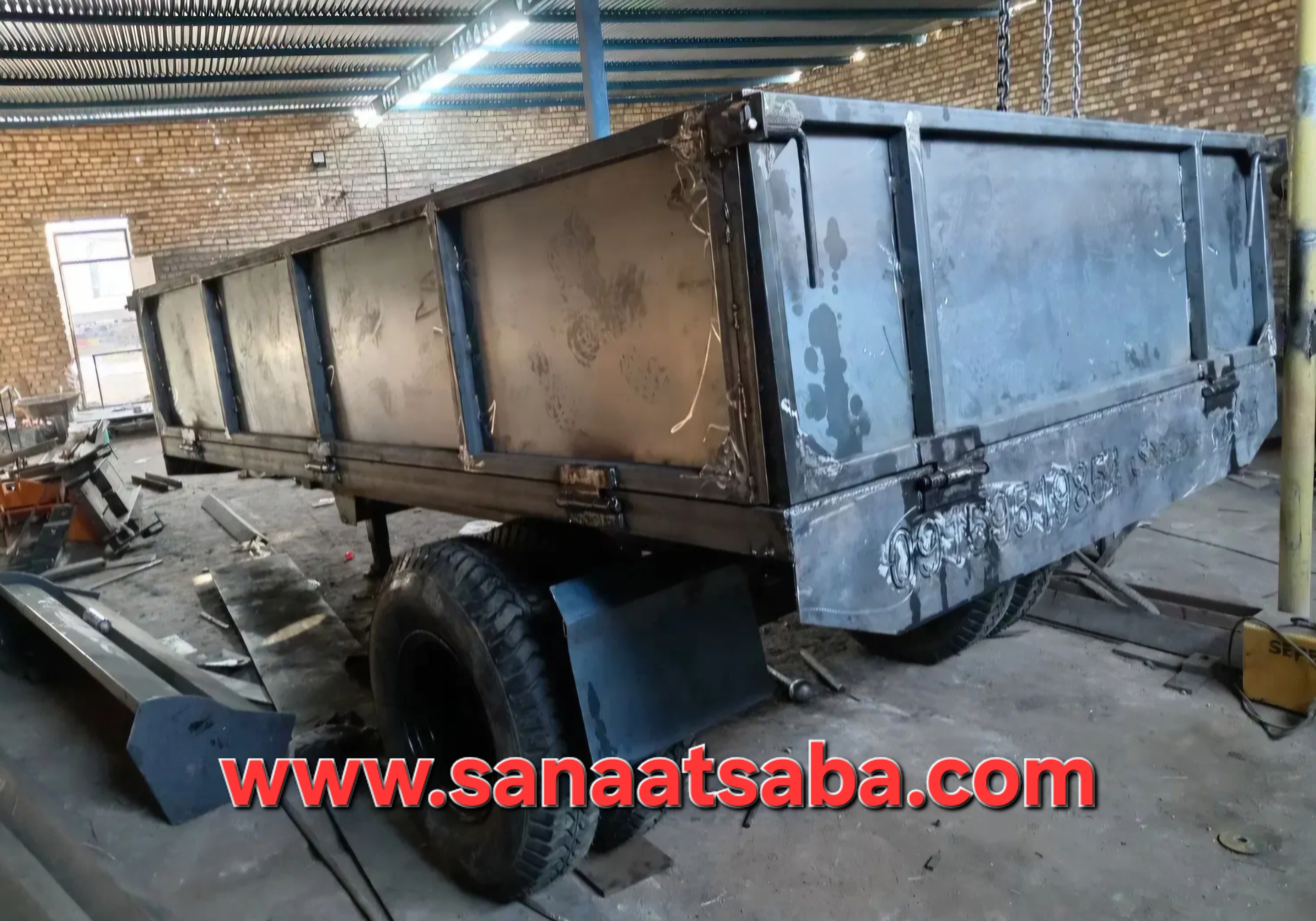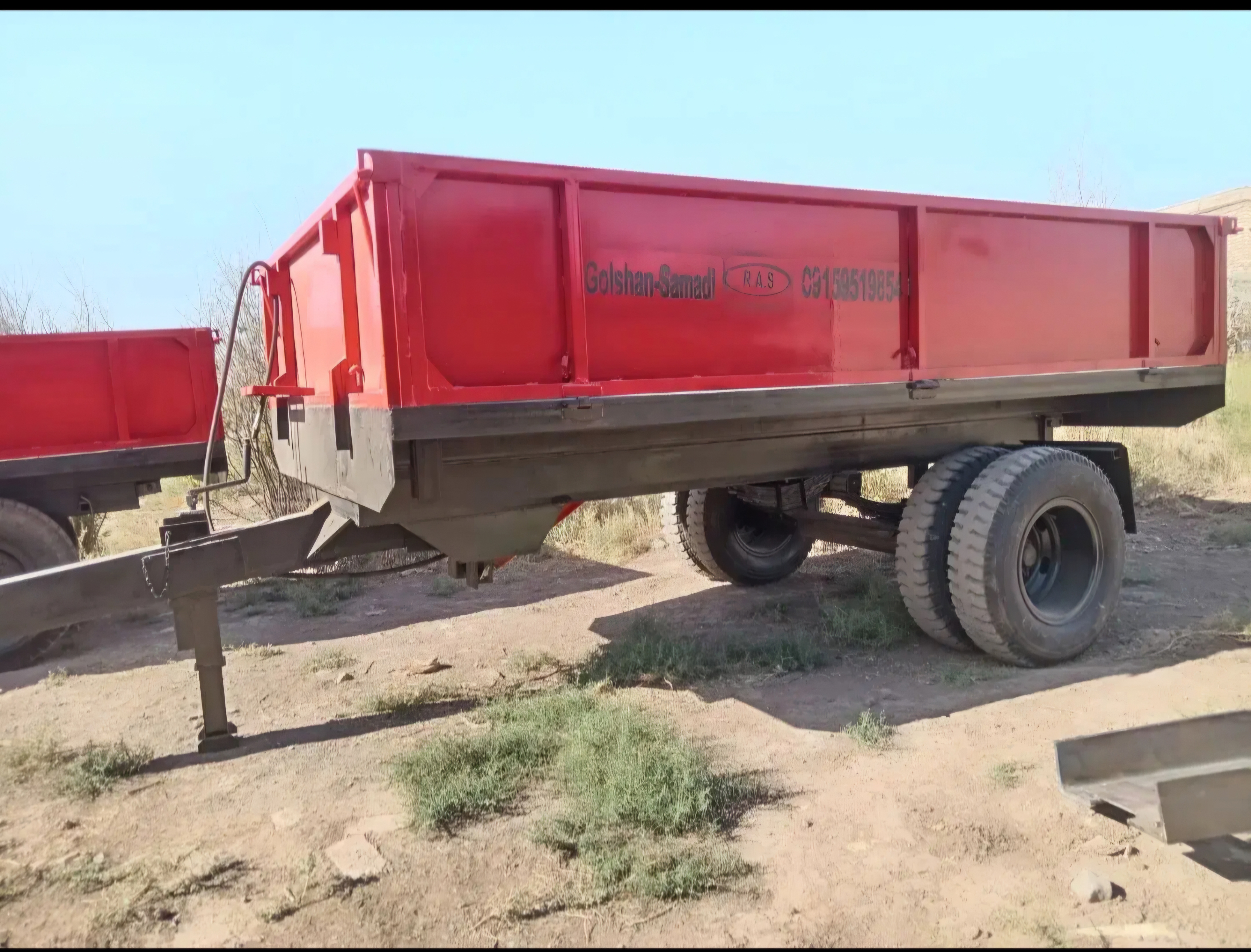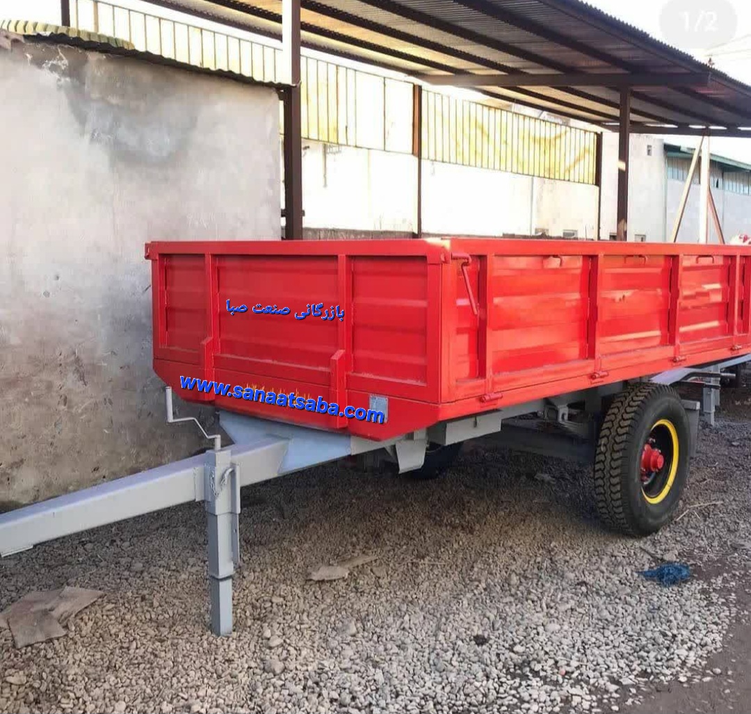 تریلی پشت تراکتوری و پشت خاوری لبه 50 سانتی ظرفیت بار 8 تن ورق 4 میل بدنه 5 میل کف با جک کمپرسی به پشت و بغل سفارشی سایز 320 سانت در 200 سانت
