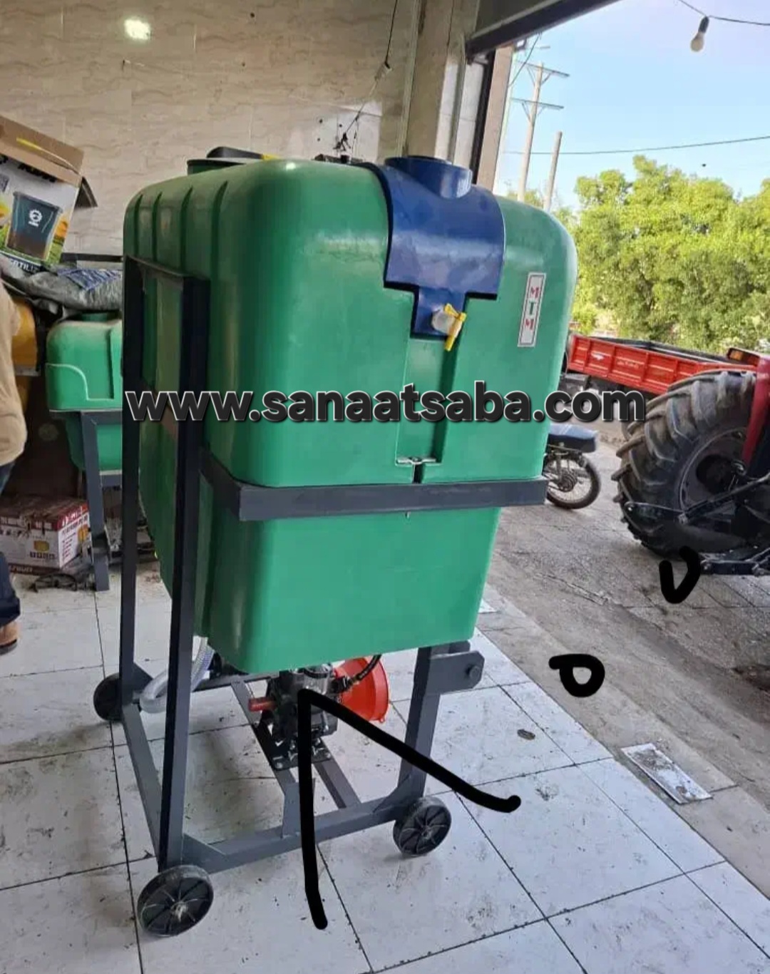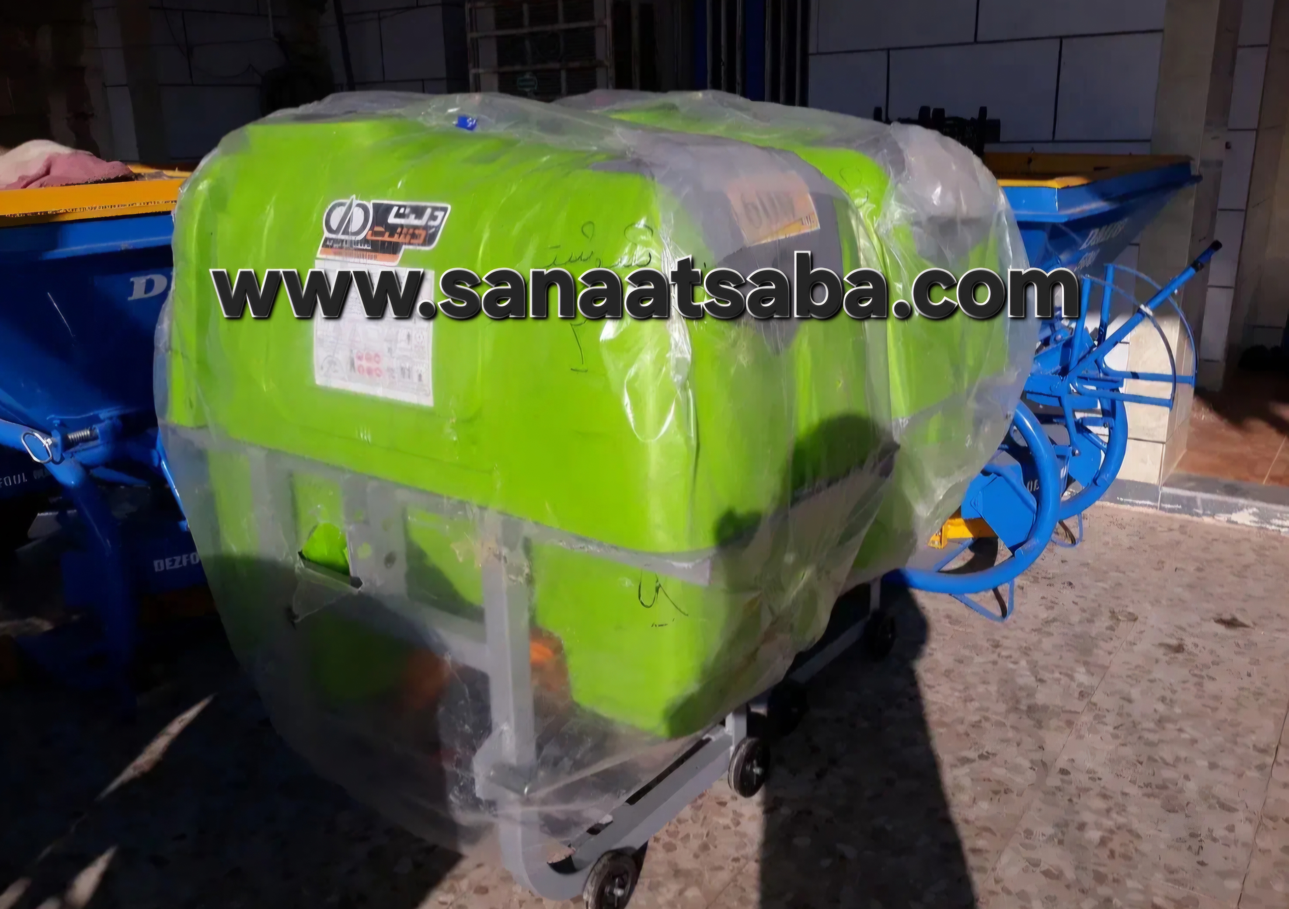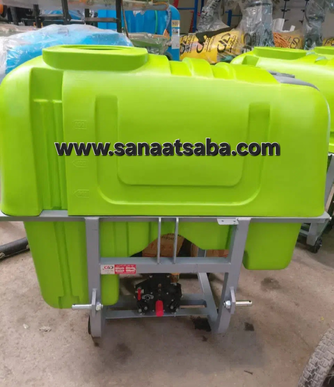 سم پاش پشت تراکتوری 800 لیتری 150 بار 2 شیر خروجی 50 متر شلنگ بوم 12 متری